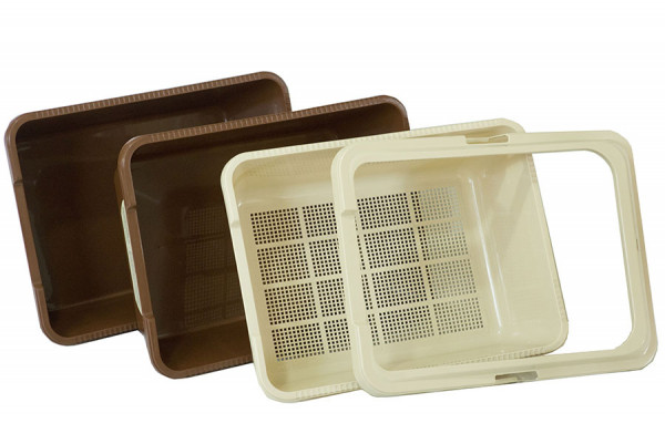 The Oz-Pet litter tray is designed specifically for use with Oz-Pet wood litter. This 4 piece Maxitray set comes with a sieve, 2 bases and a clip that holds the set together. When Oz-Pet is wet, it breaks down into smaller particles, which then falls through into the bottom tray when shaken once or twice a day. The extra base is for rotation cleaning.
