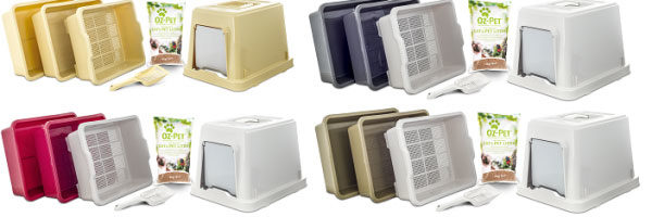 Oz-Pet Hooded Tray Set with added bonus of an Extra Base, a Hood, a 2kg bag of Oz-Pet Litter and a handy scoop